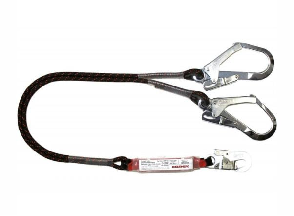 Tlmič pádu ABM 2L s dvoma spojovacími prostriedkami LB 11 - PA popruh a PA pletené lano priemer 10,5 mm - rozmer tlmiče 160×35×45 mm - dĺžka systému 1,8 m. Súčasťou sú karabíny AZ 022 (na lanách) a karabína AZ 002 (na tlmiči).